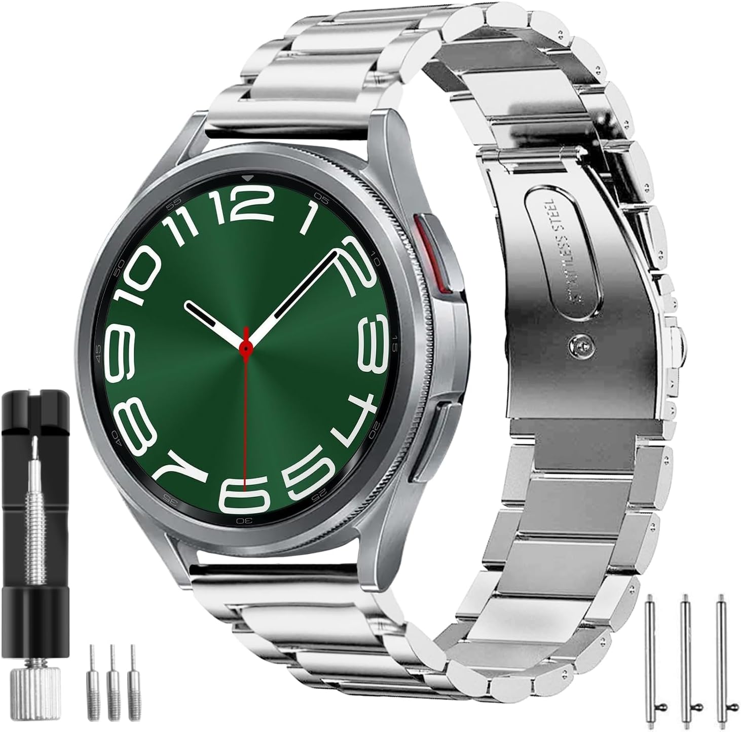 Discover Galaxy watch 3 bands in leather, canvas, sailcloth, silicone This is a solid stainless steel band for Samsung Galaxy Watch3 with quick release pins so you can easily change straps in seconds without the use of any tools